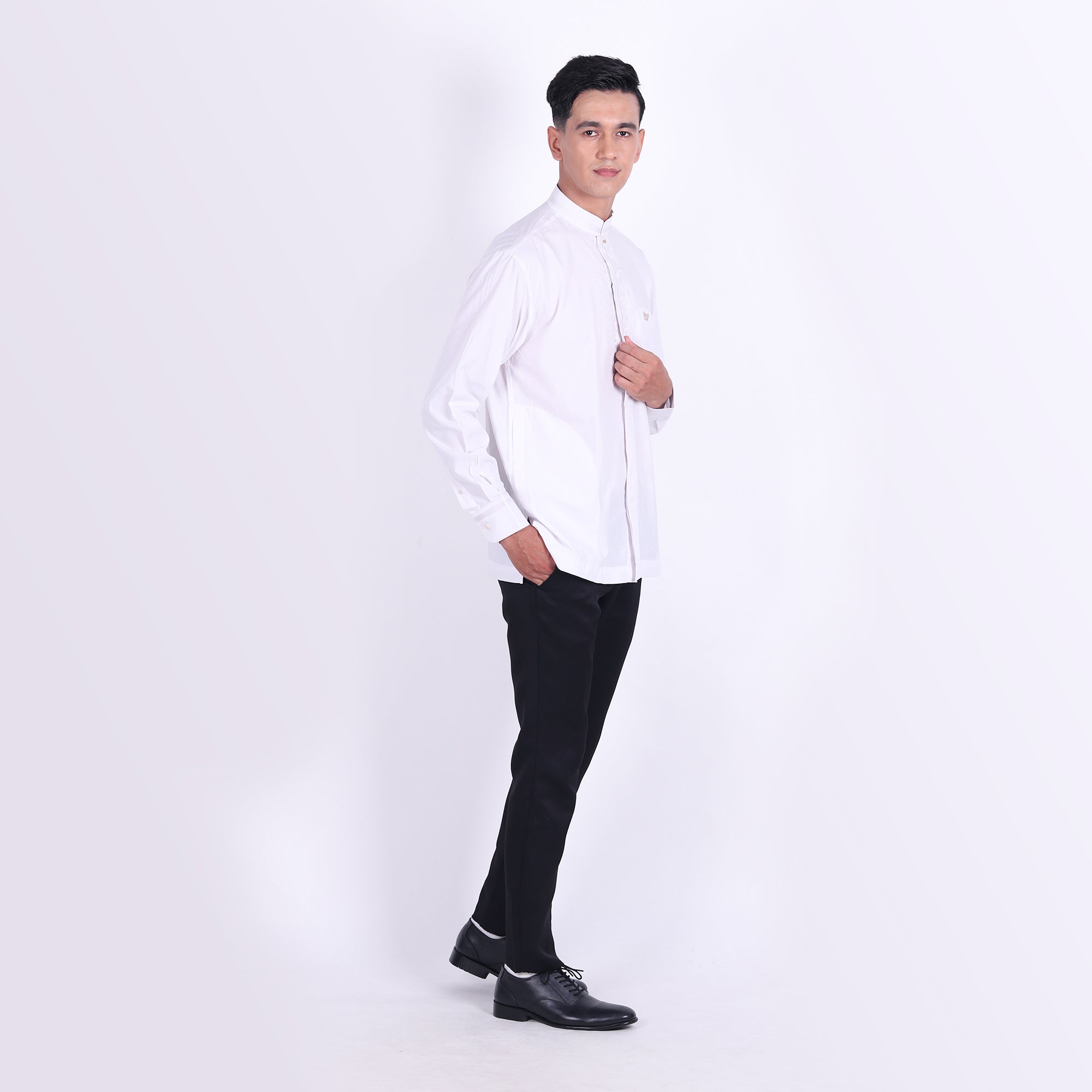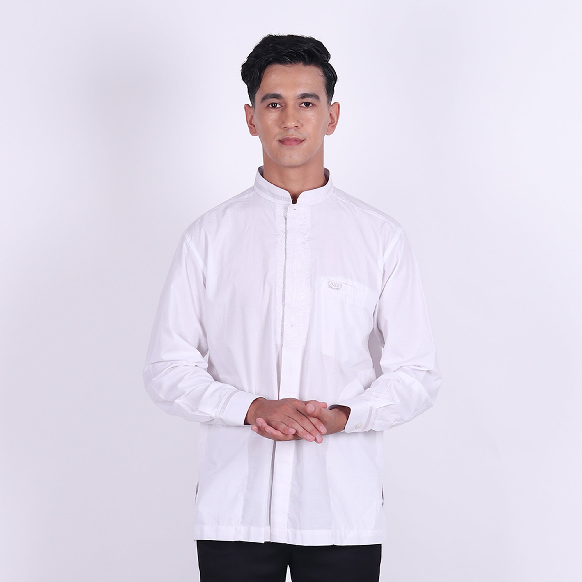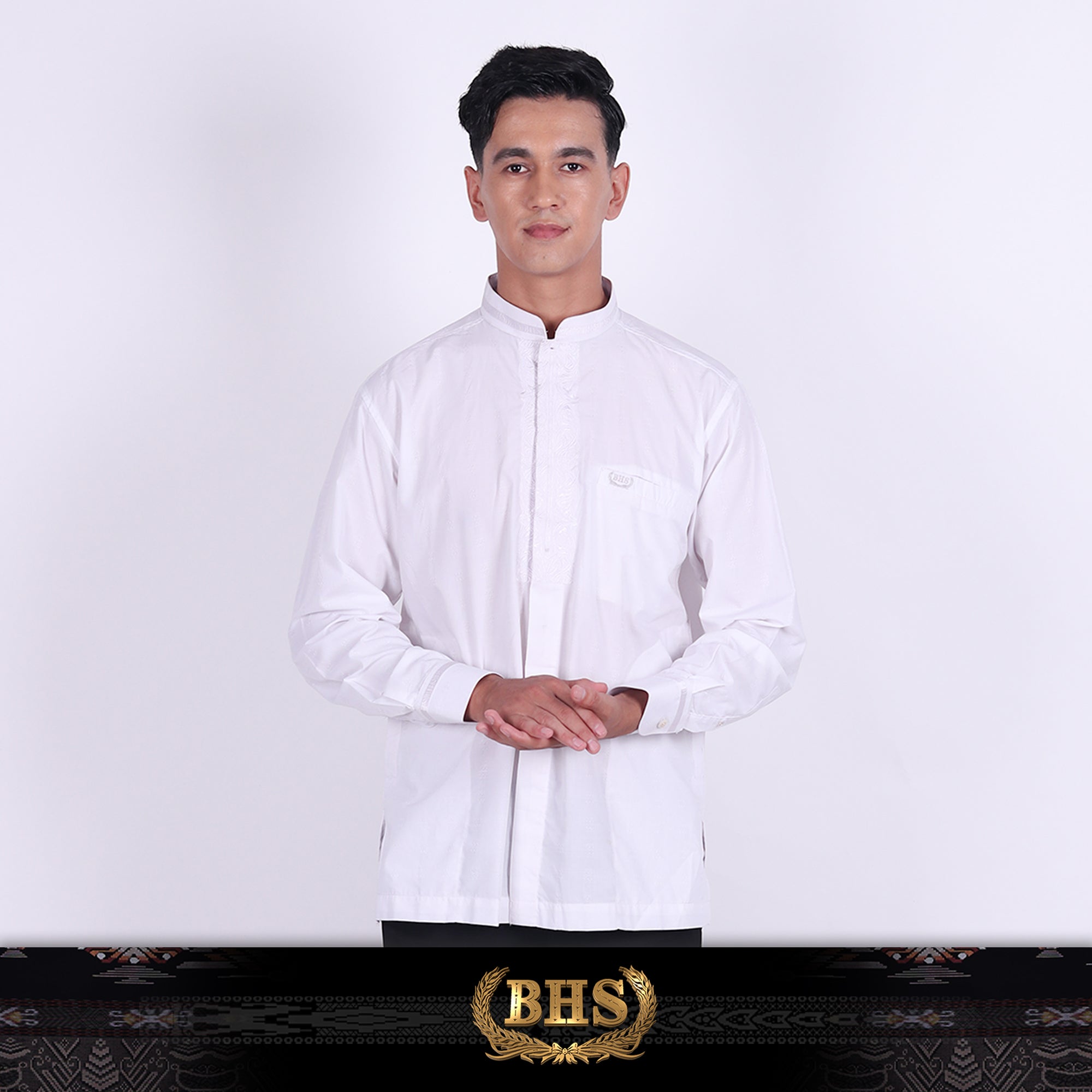 Baju Koko BHS Classic Motif Hamzah Putih