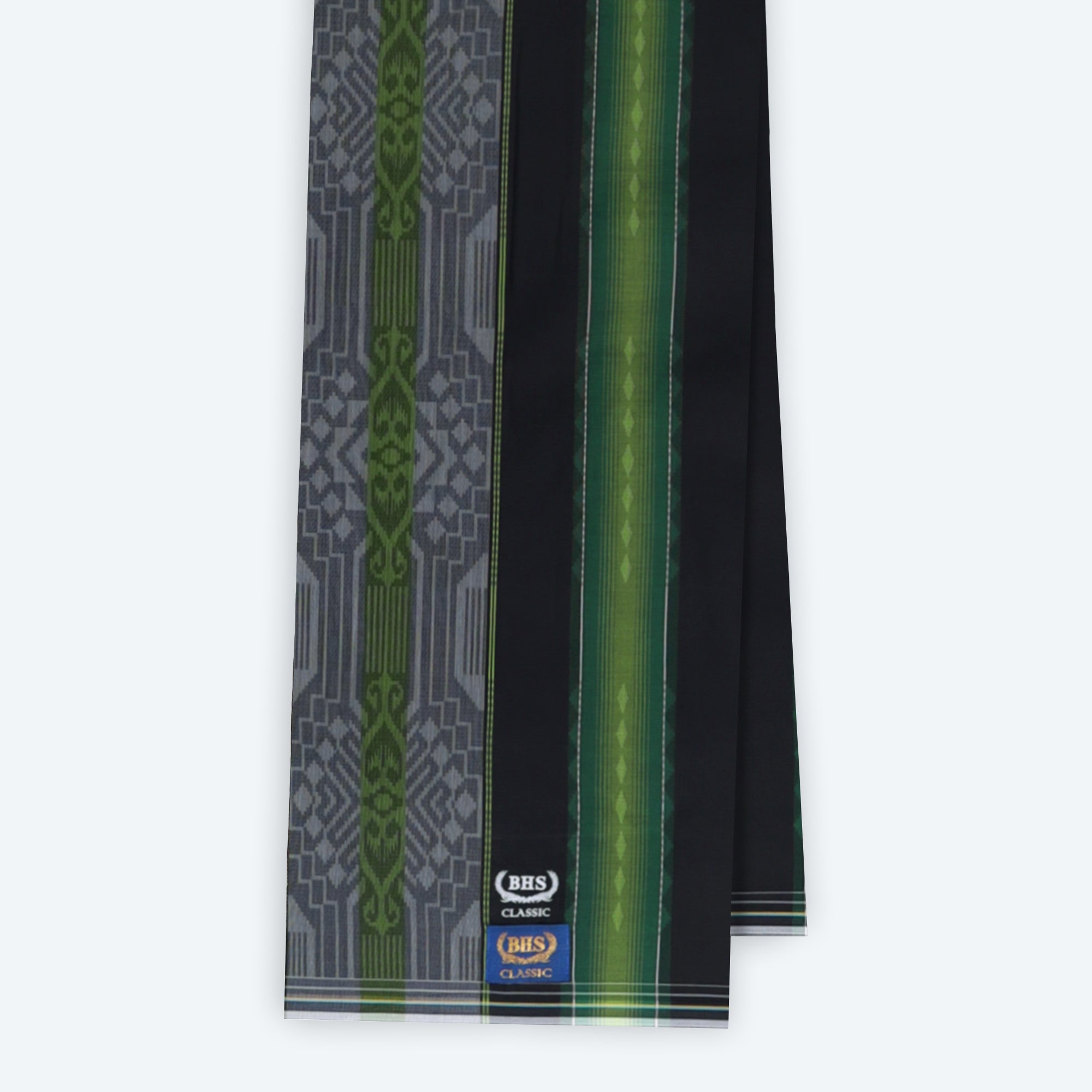 Diproduksi oleh PT BEHAESTEXSarung BHS Classic Gold Motif C44 DGB SJ Hitam Hijau 02