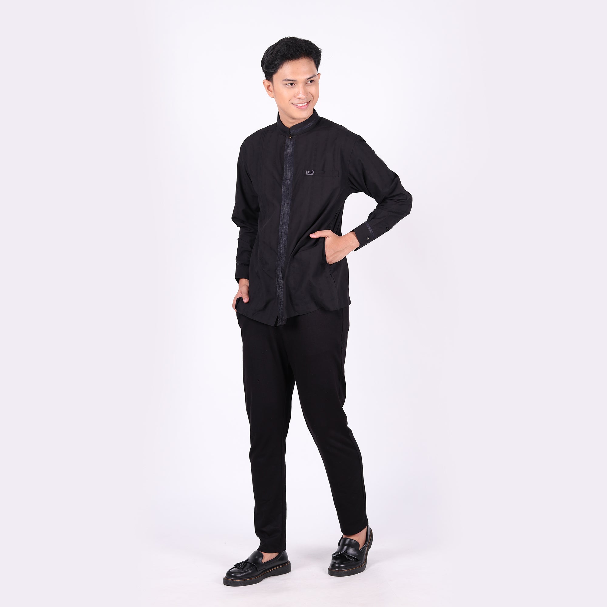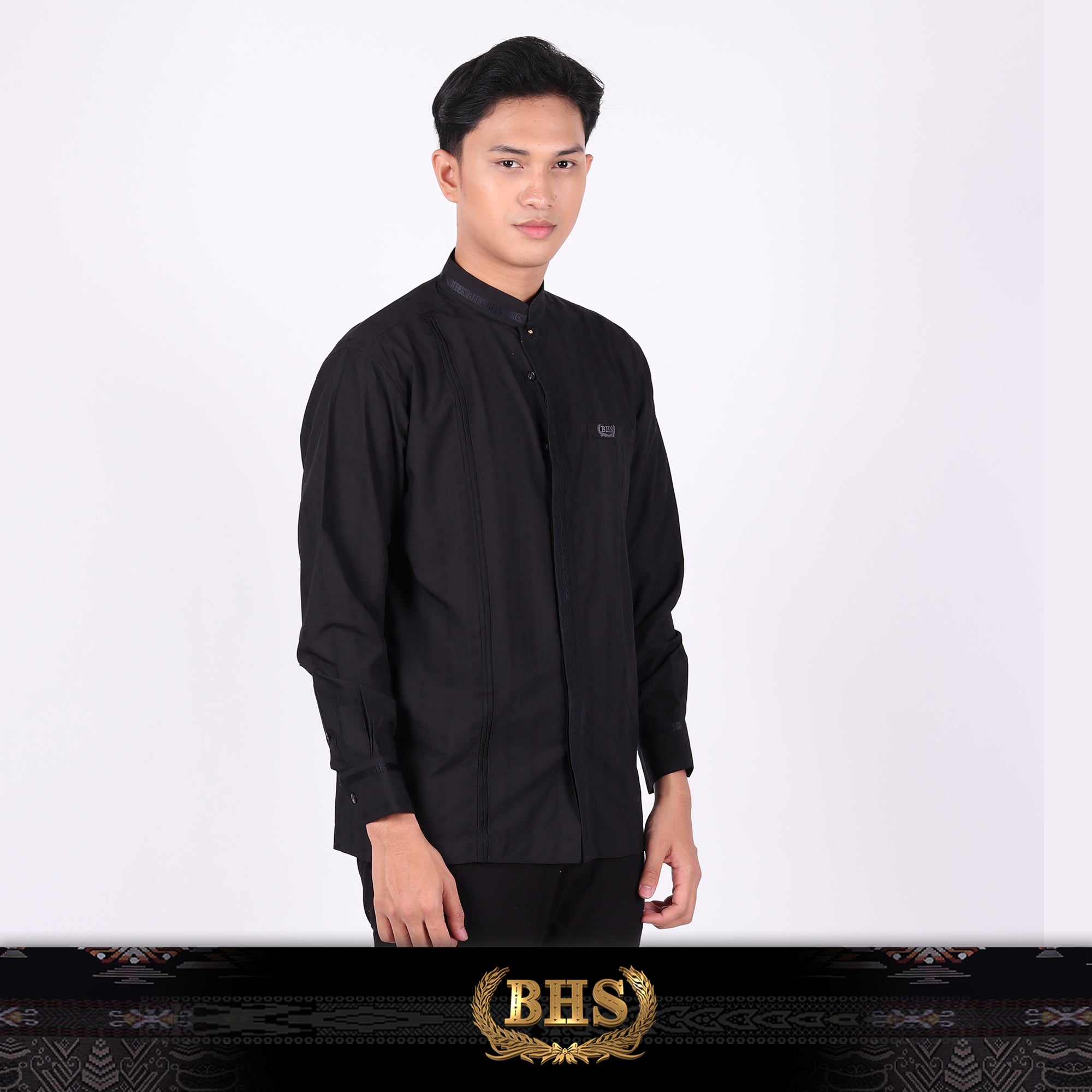 Baju Koko BHS Classic Motif Khalid Black