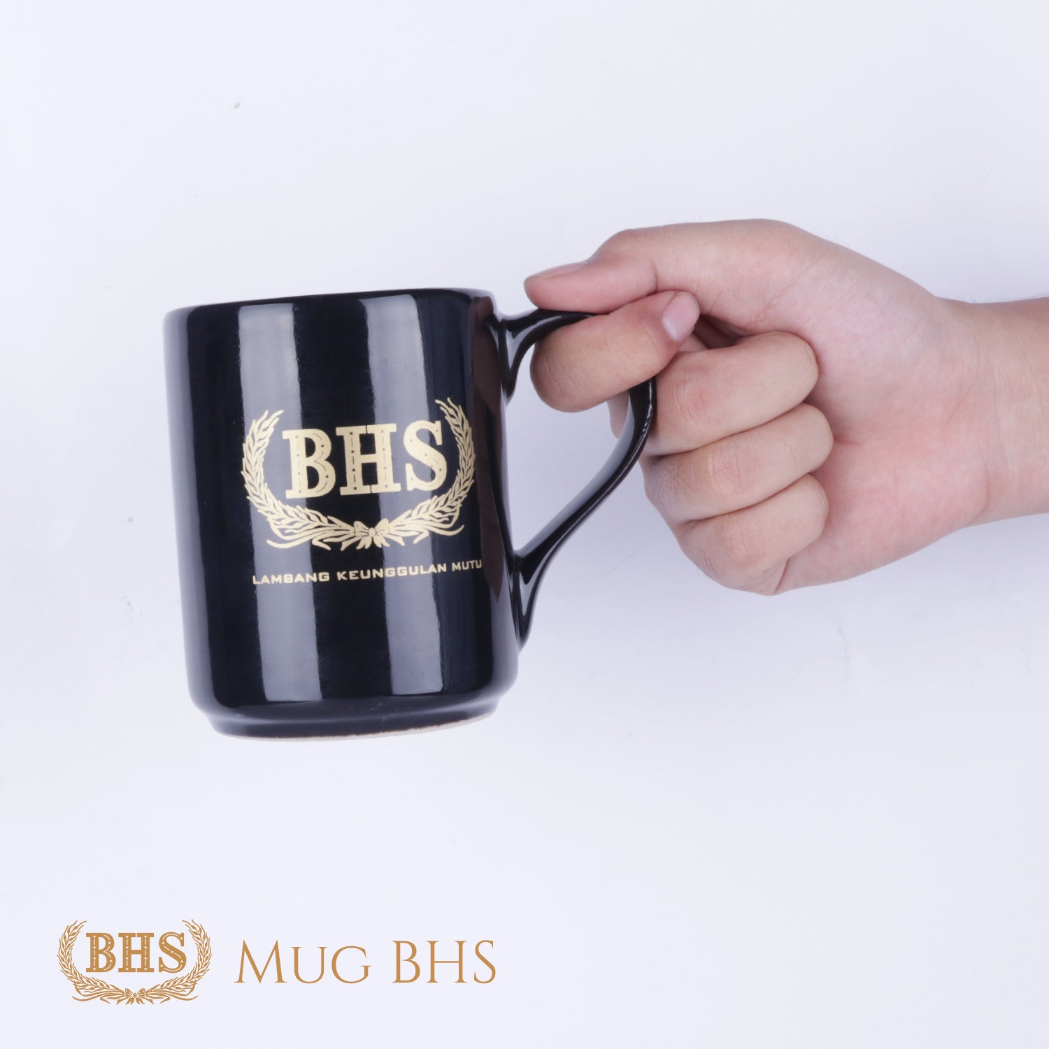 Sarung BHS presents official Sarung BHS glass mug merchandise. The glass mug is available in black with a gold Sarung BHS print.